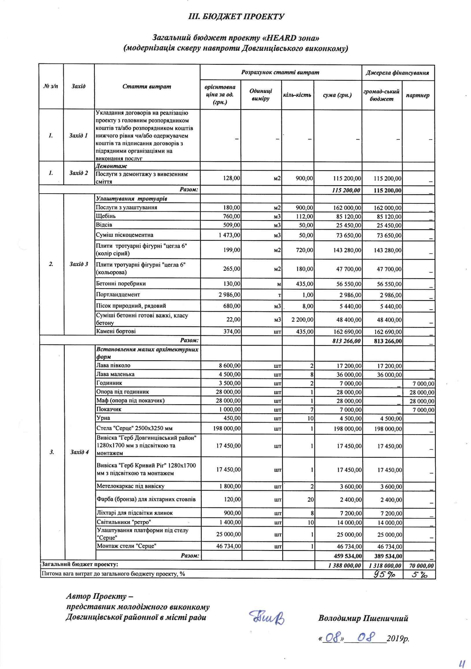 1. Скласти загальний бюджет проекту, який складається з кошториса робіт, які необхідно виконати для реалізації проекту та визначити джерела фінансування.
