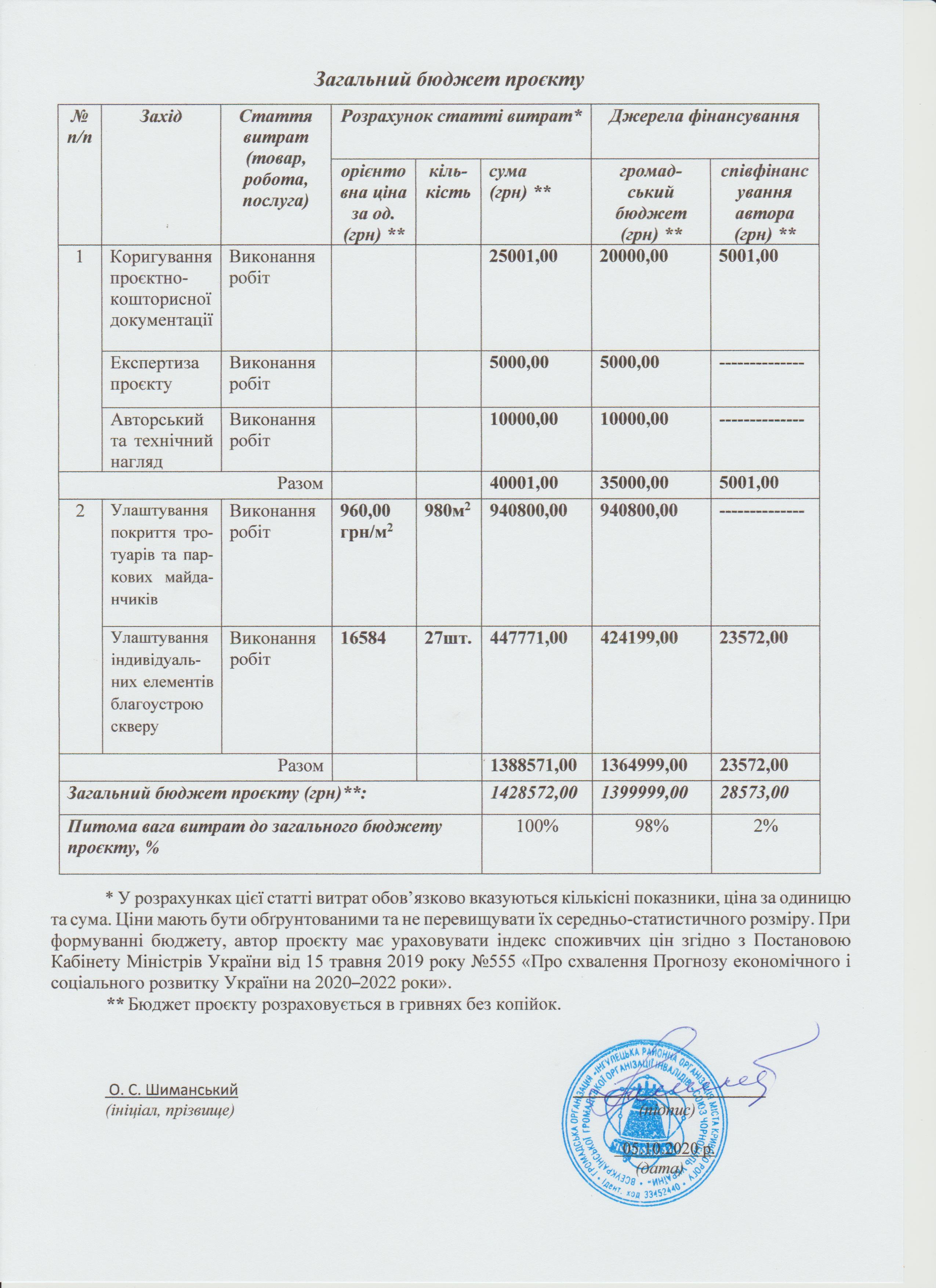Запропонований проект - це другий етап виконання робіт, відповідно до проек-ту, розробленого Управлінням благоустрою та житлової політики виконкому Криворізької міської ради в межах конкурсу проектів місцевого розвитку «Громадський бюджет» 2017 року. Виконуються роботи в межах загального бюджету цього проекту.